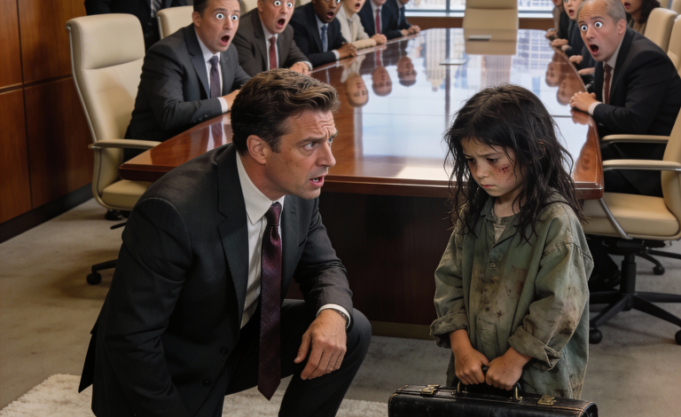 In the doorway stood a small barefoot girl. Her clothes were torn, her knees scraped, her hair caked with dust. In her arms, she clutched a black leather briefcase.