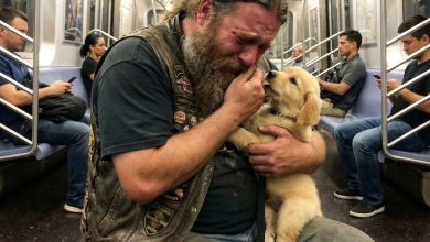 I saw a 6’5″ biker crying on subway holding a puppy and everyone hated him except me. Leather vest covered…