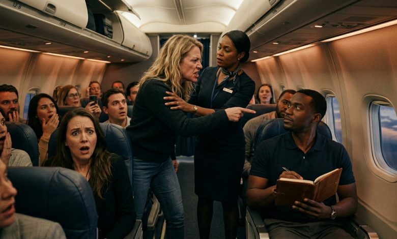 The flight attendant’s smile faded—not into anger, but into calm firmness shaped by dignity.